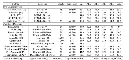 同时我们选取了FreeAnchor为基础与当前SOTA检测器进行了比较。