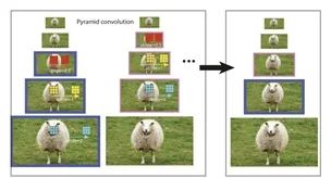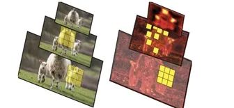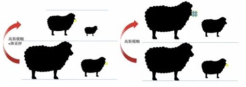 图2图3中,一张图中有两只尺度比例大概为2的羊,有一个可以检测羊嘴的特征提取器,但是其仅能对尺度较小的羊的羊嘴具有较高的响应,那么对于尺度较大的羊我们应该如何处理呢?