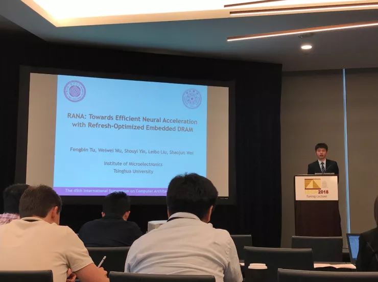 6月2日,计算机体系结构领域的顶级会议、第45届国际计算机体系结构大会(ISCA)在美国洛杉矶召开。清华大学微纳电子系博士生涂锋斌在大会上做了题为《RANA:基于刷新优化嵌入式 DRAM 的神经网络加速框架》的口头报告。涂锋斌的研究论文是今年大会中国唯一被收录的署名第一完成单位的论文。清华大学微纳电子系尹首一副教授为本文通讯作者,涂锋斌为本文第一作者,论文合作者还包括清华大学微纳电子系魏少军教授、刘雷波教授和吴薇薇同学。