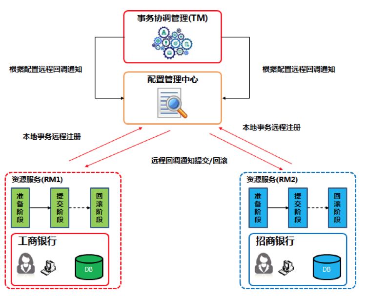 银行跨行转款,假设帐户A是工行,它通过工行向B的招商银行帐户转帐过去。这个转帐可是一个分布式事务,要么成功要么失败,不可能会有“部分成功”,这也是要求数据最终一致性的一个分布式事务的场景。