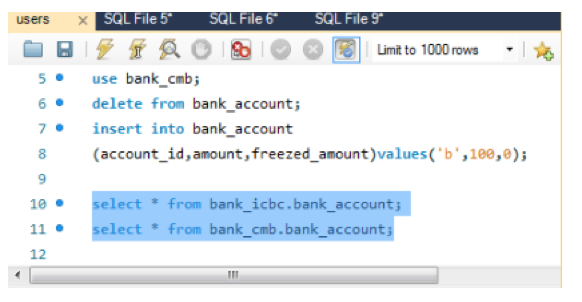 转帐时,from库和to库分别进行帐户号信息、余额信息、冻洁转帐款项的操作,并锁定资源。