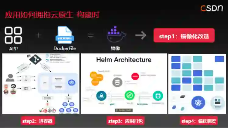 第三步,应用打包,通过Helm,将这些依赖打包进同一个package实现整个应用包管理,并可在容器化环境里快速部署。