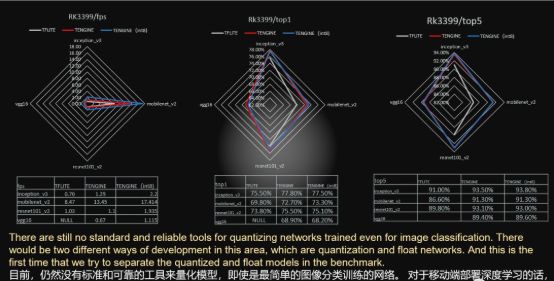 瑞芯微 RK3399开发板——该芯片在安防等领域有广泛应用,采用28nm工艺。结果显示,在浮点模型不需要定点化重新训练的情况下,int8计算以精度损失最大为1%的代价,达到了相对于浮点计算两倍的性能。