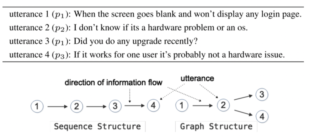 首先介绍第一个任务,其可以描述为:给定对话历史及其回复关系(即对话图),要求在对话历史中找出当前话语(target utterance)的父话语(parent utterance)。
