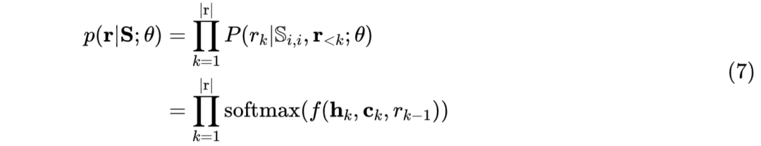 同时,SI-RNN 中还使用联合概率建模 addressee 和 response 的选择。训练时,分别以 gold addressee 和 gold response 作为前提,从而进行 response 选择和 addressee 选择,如公式(11)所示。预测时,使用联合最大概率进行选择,如公式(12)所示。