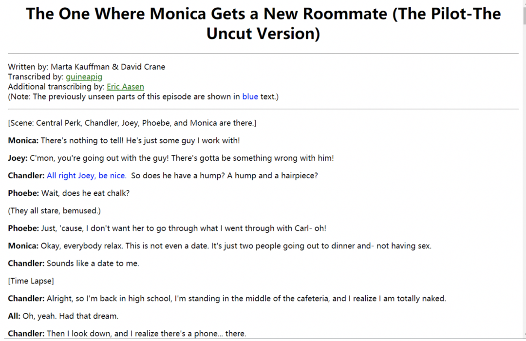 图6 老友记数据集格式 (https://fangj.github.io/friends/)