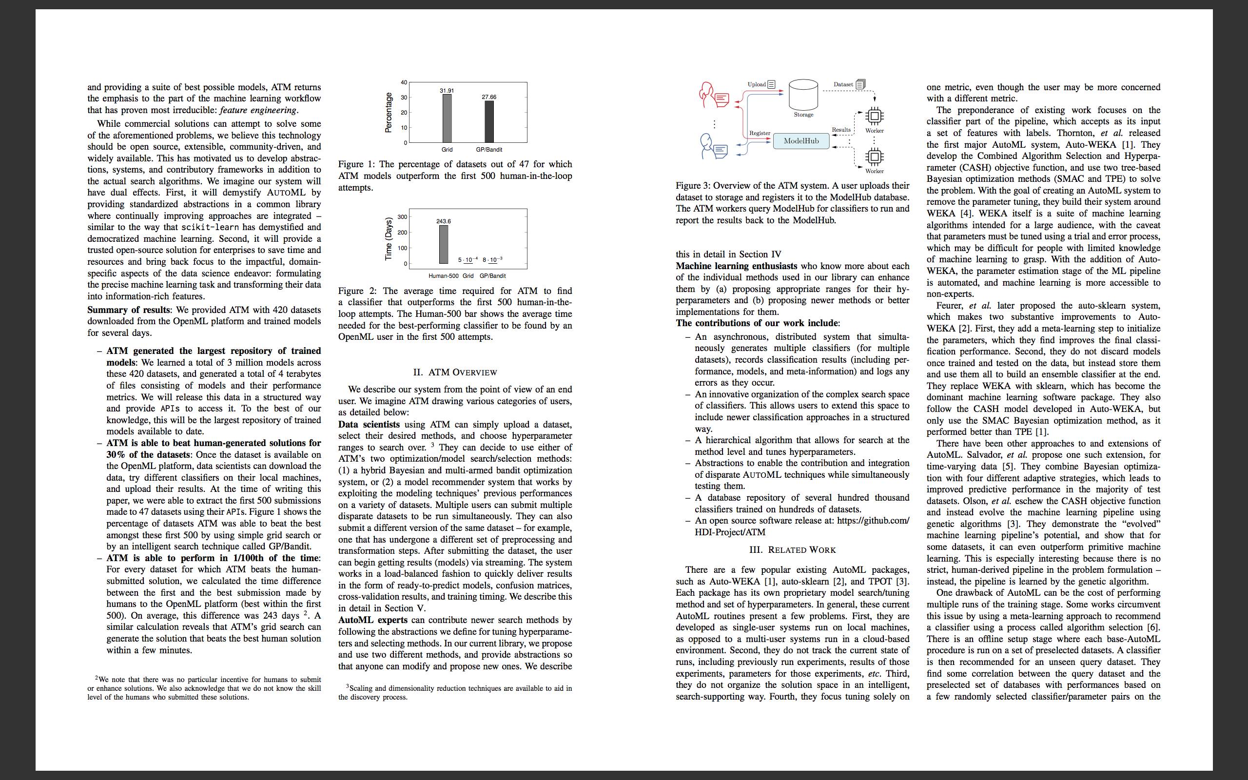 在上周的IEEE国际大数据会议上,麻省理工学院(MIT)和密歇根州立大学的研究人员发表了一篇题为《ATM:一种分布式、协作式、可扩展的自动化机器学习系统》的论文(见文末)。他们介绍了一种新系统,新系统可以使模型选择这一步实现自动化,甚至提升人类的表现。该系统名为自动调优模型(ATM),它充分利用基于云的计算资源,快速搜寻建模方案,并找到最适合某个特定问题的建模技术。它还调整优化模型的超参数(优化算法的一种方法),这有望大幅提升性能。ATM现在是一种开源平台,可供企业使用。