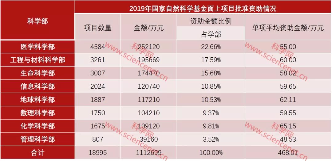 2019年国家自然科学基金委决定资助面上基金项目18995项。