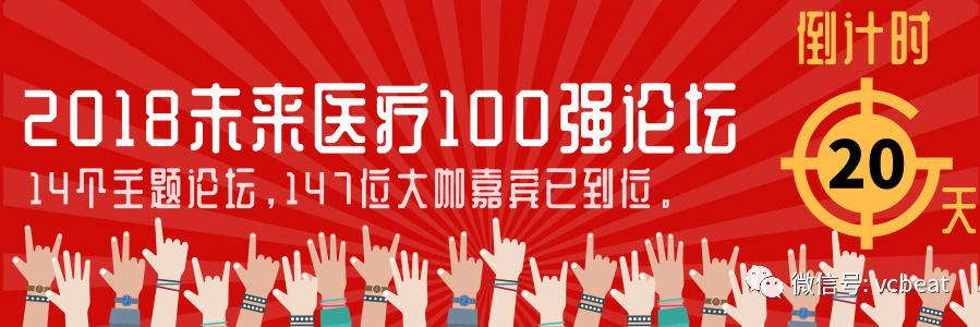 “2018未来医疗100强论坛”是动脉网打造的属于医健领域创新者的年度盛会。本论坛将以未来医疗100强榜单&奖项的发布为契机,举办14场主题论坛,邀请近200位行业大咖,聚集国内外最为活跃的医疗健康创新企业、上市公司、金融机构、医疗机构等产业核心力量,促进产业链有效互动合作,推动创新健康医疗产业的变革进程。长按识别图中二维码,即可报名!
