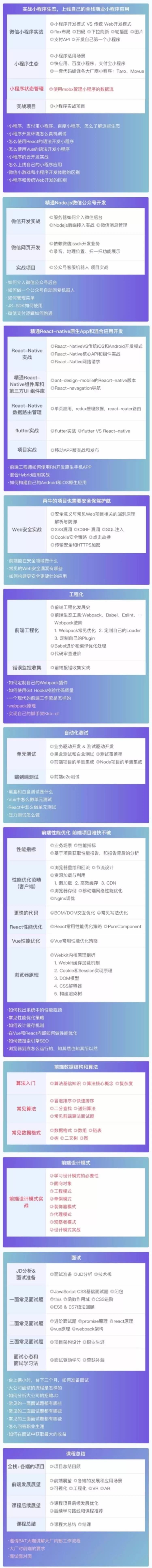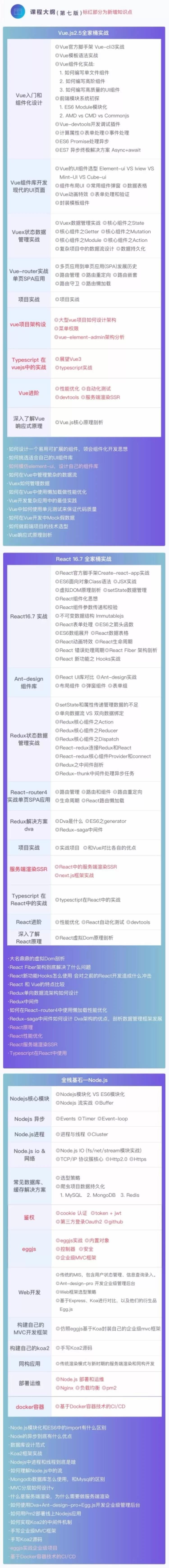 课程内容涵盖了当下前端主流技术栈,无论你是想重点深化哪几个块,还是想系统的提升,都很适合↓↓(第7版大纲)