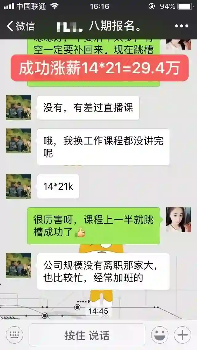 就之前对毕业学员的小调查,消化好全部课程70%左右的内容,涨薪幅度至少5K起。(坚持学习的回报是丰厚的)