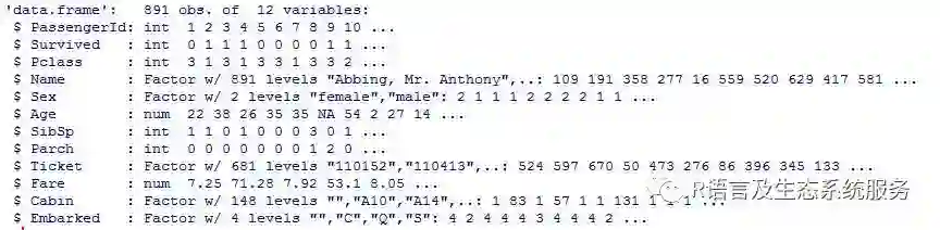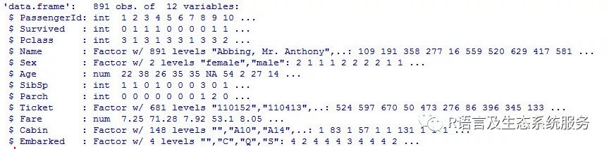 ####导入数据集 Data<-read.csv("train.csv") View(Data) ##查看数据结构 Str(Data)