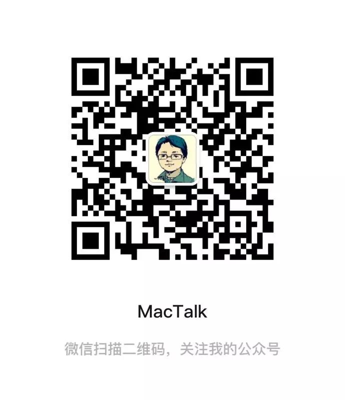 今天文末推荐极客邦科技总裁池建强老师的微信公众号 MacTalk。MacTalk 开通于 2012 年末,内容起于 Mac 而不止 Mac,内容覆盖了技术、创业、产品和人文思考,文风有趣,又有一点力量。