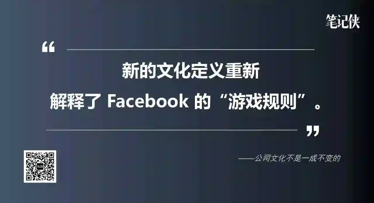 新的文化定义重新解释了 Facebook 的“游戏规则”,清楚地告诉每个人,这个公司需要长年地加速运营,不是几天,也不是几周而已。