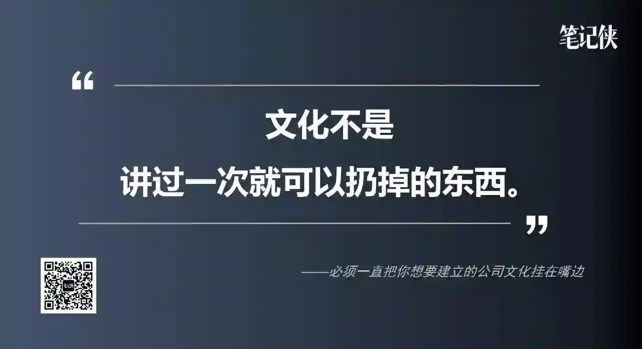 “你必须在每次会议上,都反复讲你想要传达的文化,把他们写在每一封邮件里,尤其是 CEO 或创始人。即使是管理层,也要把这个工作当成所有工作中很重要的一部分。”