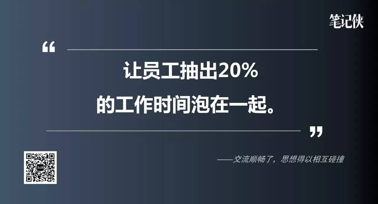 我让员工抽出20%的工作时间泡在一起,而不是去忙各自的业务。我让他们呆在一块儿,不强迫他们非得成为朋友,但可以让他们在与同事相处时感觉更舒适,交流更顺畅。