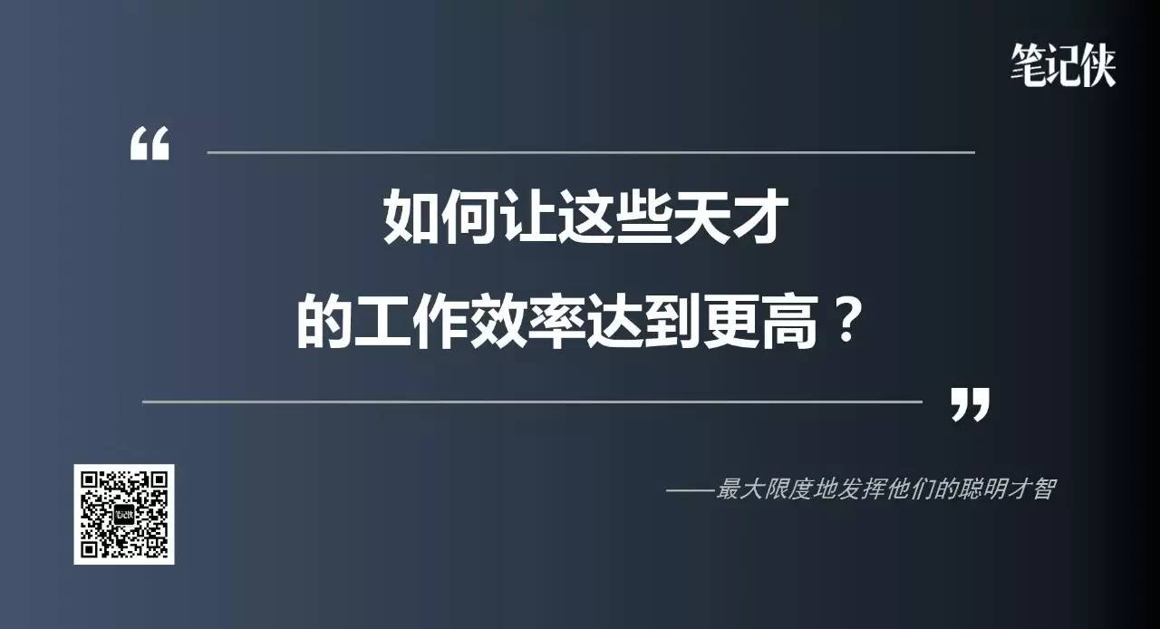 大家各司其责,很少向他人求助,但有一点是相同的:我们都试图找到一种颠覆现状的方法。也就是说,如何让这些天才的工作效率达到更高,最大限度地发挥他们的聪明才智。或许可以摒弃无休止工作的模式,毕竟他们开发的不是小儿科产品。