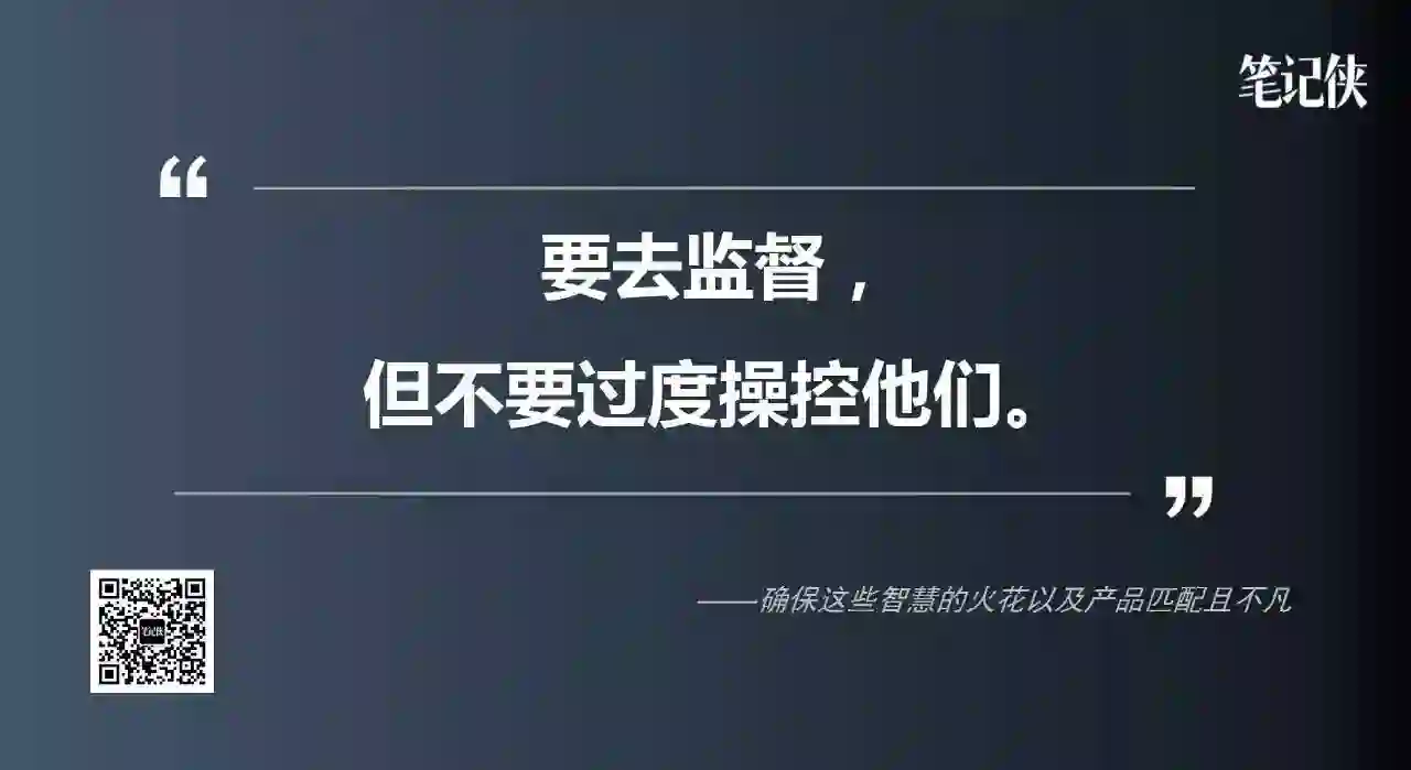 这个故事也可以应用在公司的雇佣、产品发布会、各式各样的会议等各种场景,在这些场合不断加强对外输出“我的公司是关于什么的”,“你想要的哪类人才”,“还有你为什么要做现在做着的事情”。