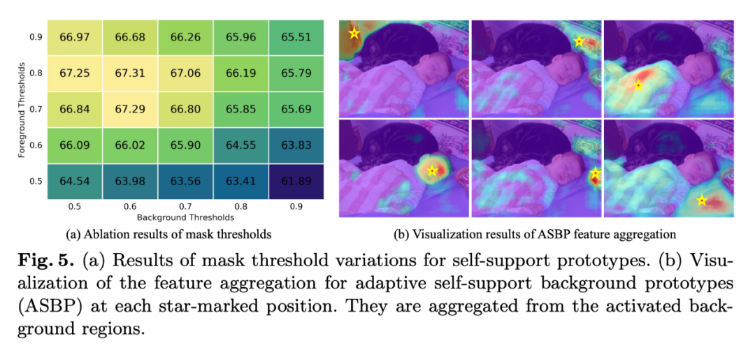 3. 图 5 分别对 mask threshold 的取值进行分析和对 ASBP 的工作原理进行了可视化。