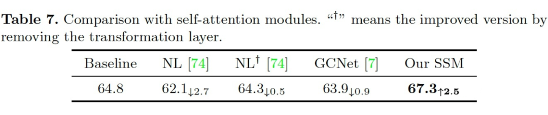 5. 表 7 讨论了自支持算法与自注意力方法的区别。