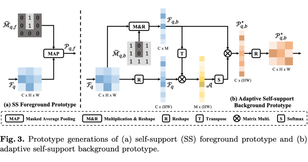 可以注意到,我们的算法分别对 foreground 和 background 的 prototype 进行建模,但是 foreground 和 background 的性质完全不一样。对于 foreground 来说,同一个物体的不同部分之间一般是相似的,具有全局的相似性,所以可以使用 masked average pooling 将所有的 foreground 像素聚合为一个 prototype 向量来表示 foreground。