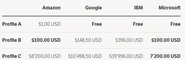 从数据上看,对于小客户来说,定价没有多大差别。虽然亚马逊从第一张图片开始收费,但处理 1000 张图片仍然只需要一美元。然而,如果你不想支付任何费用,那么谷歌、IBM 或微软将是你想要选择的供应商。