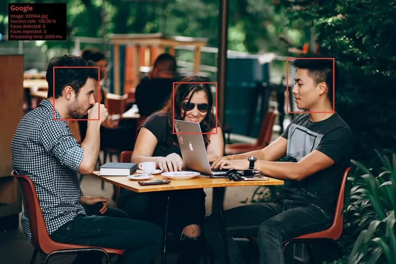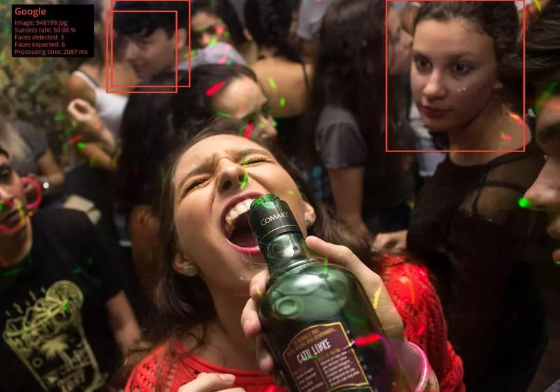 我浏览了所有的图片,记下了我认为已经检测到的面孔数量。我会用这个数字来计算每个供应商对图片的成功率,看看它是否能检测到像我一样多的面孔。