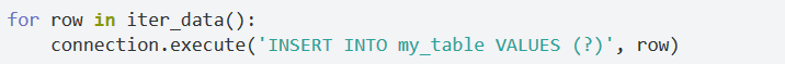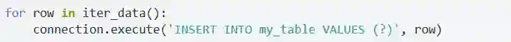 如果你需要一次性向数据库插入很多行,你不应该使用execute方法,sqlite3提供了一种批量操作的办法:executemany。