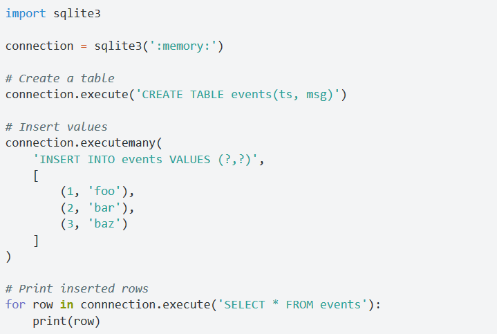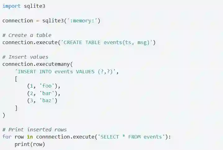 像execute和executemany这些操作都可以直接在连接对象上执行。下面是一个小例子: