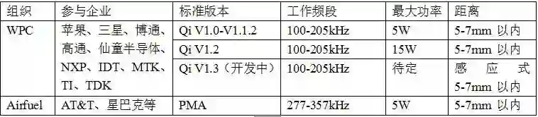 电磁感应式无线充电优势在于方案相对成熟,应用的终端产品众多。同时两大无线充电组织WPC和Airfuel(为A4WP/PMA合并后的新联盟)均有相关标准的支持,并且参与的大型企业众多。