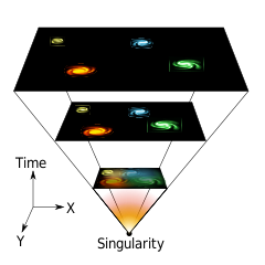 说回勒梅特,他除了在宇宙膨胀定律理论方面的贡献外,另一项贡献是最早提出了当今为大家所接受的大爆炸宇宙学的雏形。