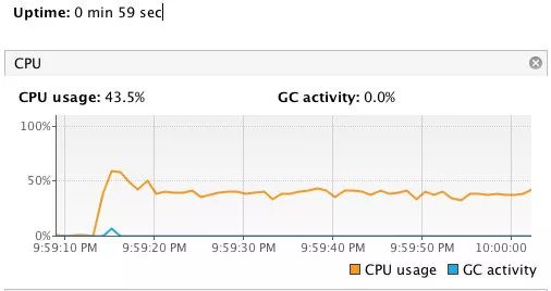 跑了一分钟,发现 CPU 的使用率一直都比较平稳而且不高。