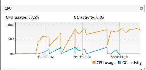 跑了一段时间发现 CPU 使用率确实很高: