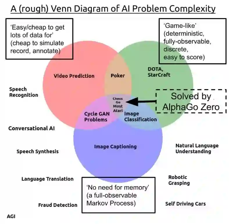 在 NIPS 2016 上,Yan LeCun 认为最有价值的问题是“Predictive Learning”问题,这其实类似于非监督学习问题。他的发言代表了学界近来的主流看法。而 Ben Recht 则认为,RL 比监督学习(Supervised Learning, SL)和非监督学习(Unsupervised Learning, UL)更有价值。他把这三类学习方式分别与商业分析中的描述分析(UL)、预测分析(SL)和指导分析(RL)相对应 [18]。