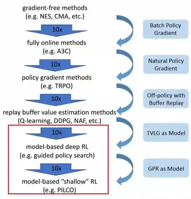 通过 Recht 的分析,我们似乎找到了 DRL 问题的根结。近三年在机器学习领域大火的 DRL 算法,多将免模型方法与 DL 结合,而免模型算法的天然缺陷,恰好与 Alexirpan 总结的 DRL 几大问题相对应(见上文)。