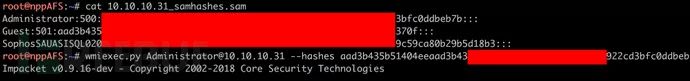 成功执行NTLM中继后,你会在执行ntmrelayx的目录中找到名为“IP_samhashes”的哈希文件。