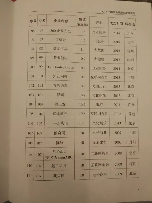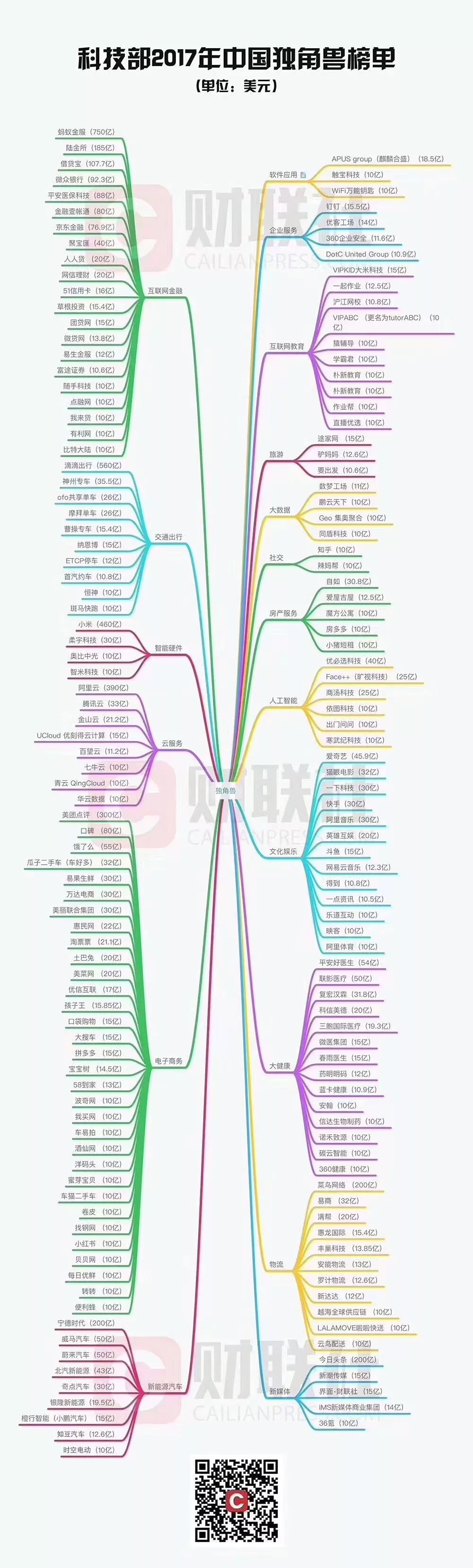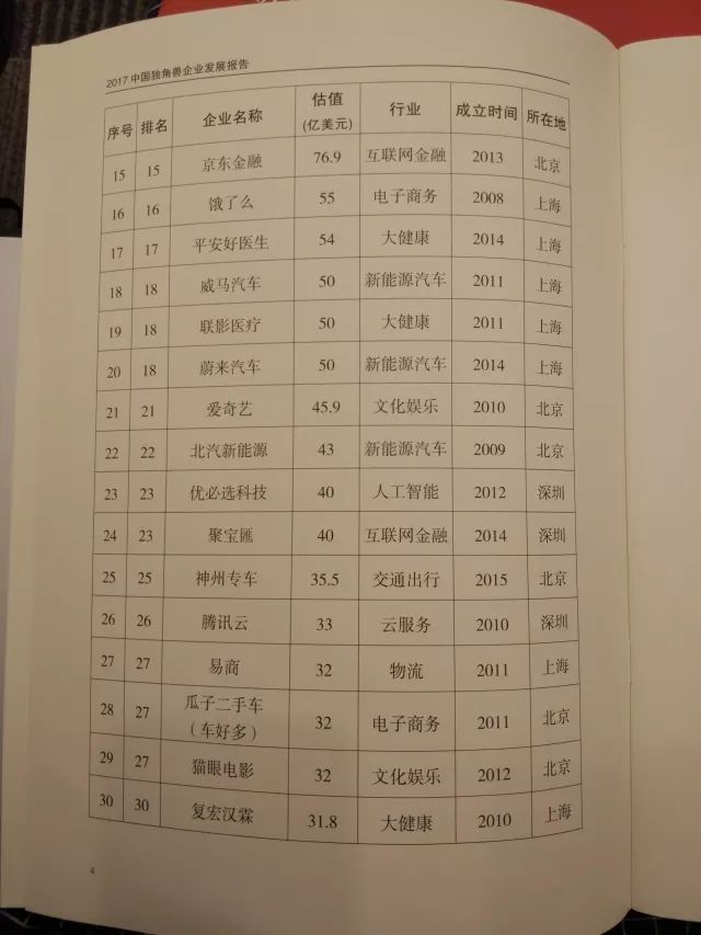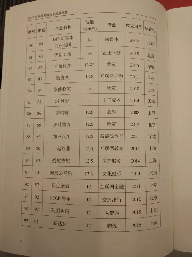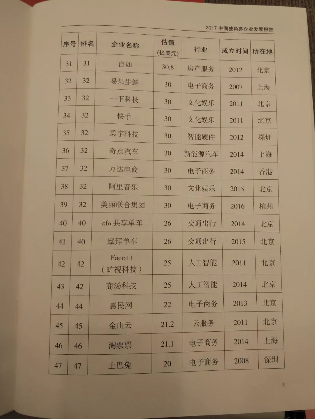 ⑤符合条件①②③,且企业估值超过(含)100亿美元的称为超级独角兽。(估值以2017年12月31日前最新一轮融资为依据)
