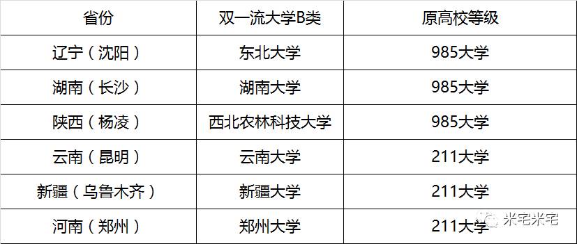 这是进入此次双一流高校建设中需要注意的6所学校。曾经的985大学东北大学、湖南大学、西北农林科技大学为B类。