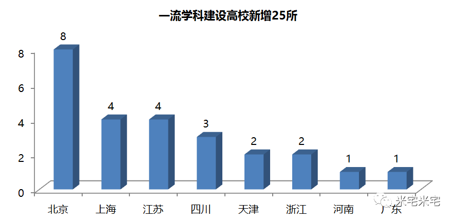 一流学科建设高校,在原211大学基础上新增了25所高校。这25所高校除了分布在北京、上海两城之外,处于东部的江苏、浙江是最大的赢家,西南的四川后劲儿平稳。