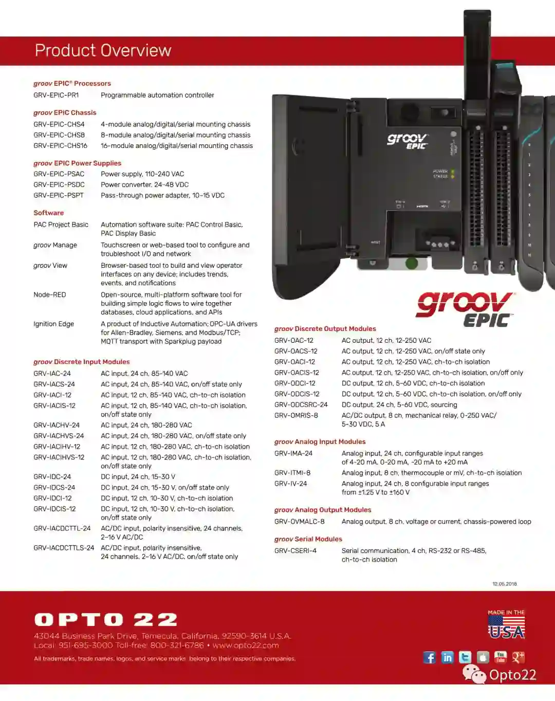 工业自动化市场的第一套EPIC系统出自于Opto22,一个经验丰富的控制系统制造商,从底层开始设计了其groovEPIC系统满足现在和未来自动化工程师的需求。GroovEPIC于2018年发布,并且不断的升级获得更多的功能。