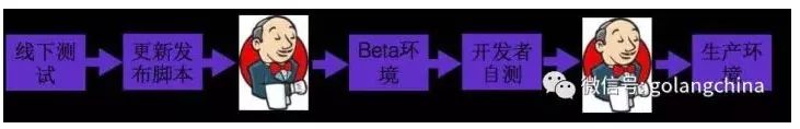 线上发布是用 Jenkins 脚本的方式:用 Jenkins 的脚本做测试,执行代码推送. 当有新加一台服务器或者下线一台服务器,要去修改这个发布脚本。 发布流程大概是这样的: jenkins脚本先往beta环境发,开发者在 beta 环境里做自测,自测环境没有问题就全量发。