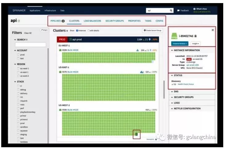最重要的是我们有一个叫 Canary 的发布过程,我们在 Spinnaker 的基础上,开发了一套 Canary 的机制。Canary 和 Beta 差不多,但 Canary 是真实引入流量,它把线上用户分为几类:一是比较稳定的流量用户;二是这些用户稍微可以牺牲一点,帮我测试某一个新版本,我们的实现就是先给公司、先给办公室的人来用,等办公室的人用得大家的反馈都 OK,没有什么问题,看看监控数据也觉得没有问题,才开始在线上做发布了。