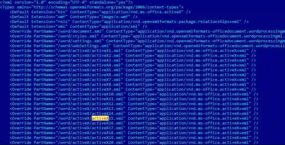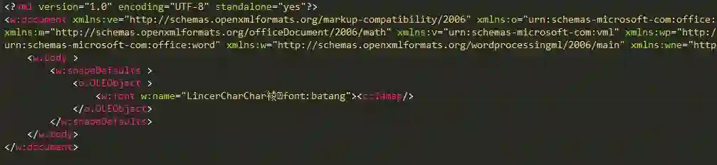 漏洞利用载荷本身为word/document.xml格式,如下所示: