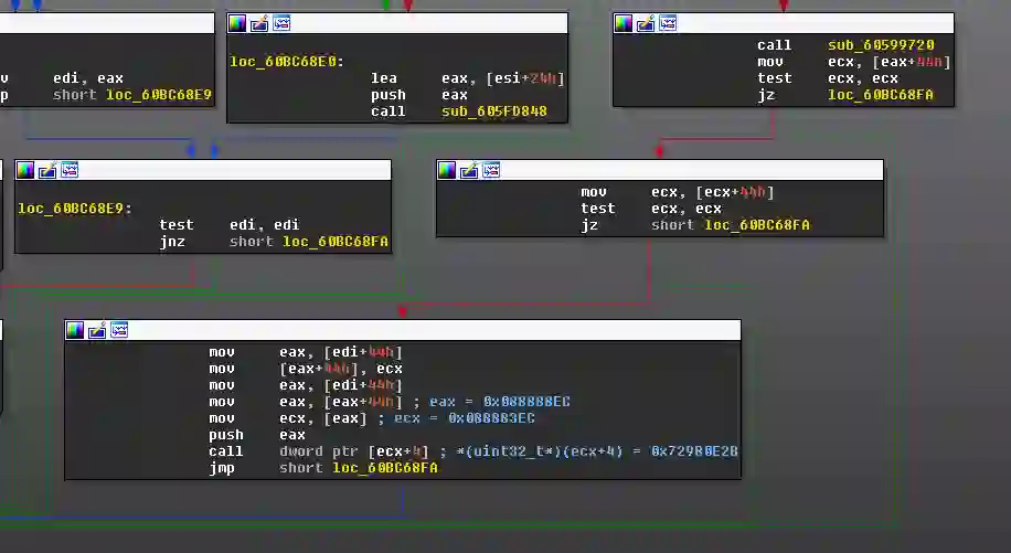 如果这些条件全部满足,这个指针会被解除引用,控制流程会移交给“该地址+4”处所对应的内容。