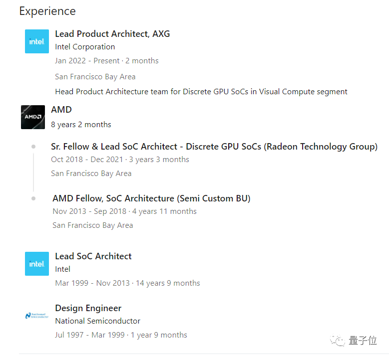 据LinkedIn显示,Verma曾在半定制业务部门担任AMD研究员和首席SoC架构师,之后成为AMD独立GPU高级研究员和首席SoC架构师。