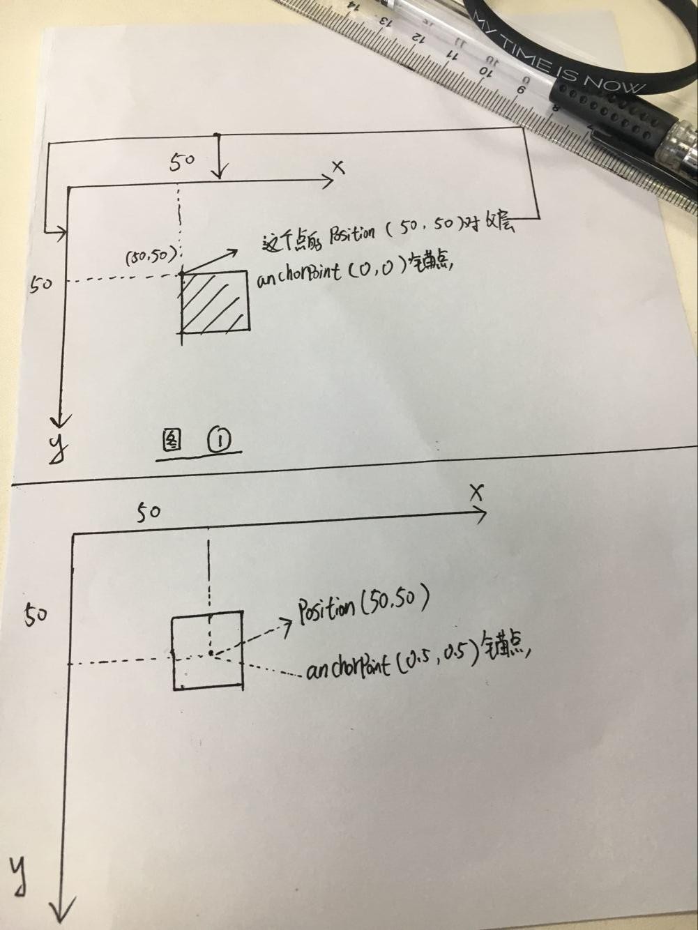 我们把 锚点也就是 anchorPoint 点 想象成 CALayer上的一个钉子,把父层想象成一面墙 上面有个洞 就是 position 现在那个洞在哪个地方 我们就用钉子 扎到哪个地方,这个是不是好理解了一点. 接下来用代码 来描述