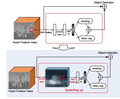 于是,提出一个深度的多层网络,称为“HyperNet”,用来处理候选区域的产生和共同目标检测。HyperNet先融合不同层的特征图,然后将它们压缩到一个统一的空间。