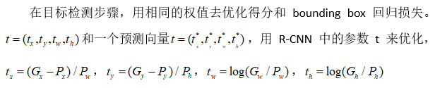 检测网络也有两个相似的输出层。不同的是,对于每个候选框,其有(N+1)个输出得分和(4*N)个bounding box回归补偿(其中N是目标类别数目,+1是背景)。