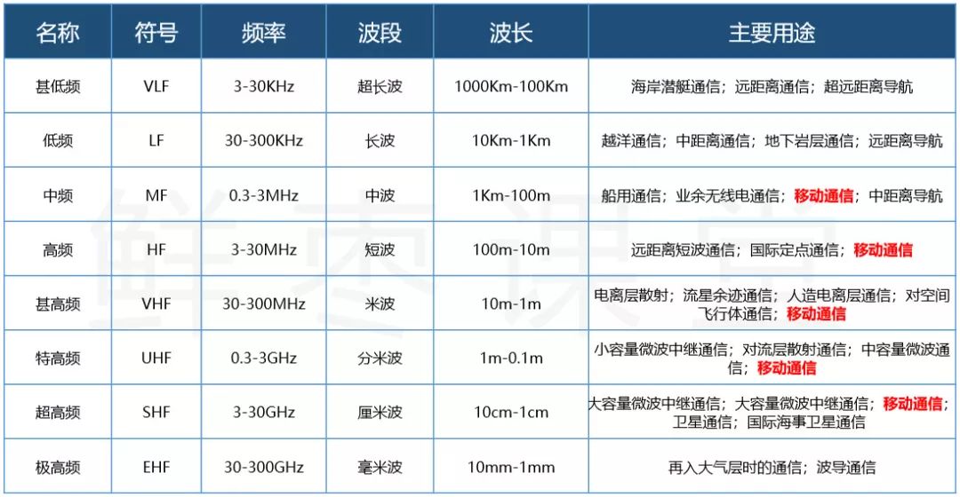 请大家注意上面图中的红色字体。一直以来,我们主要是用中频~超高频进行手机通信的。
