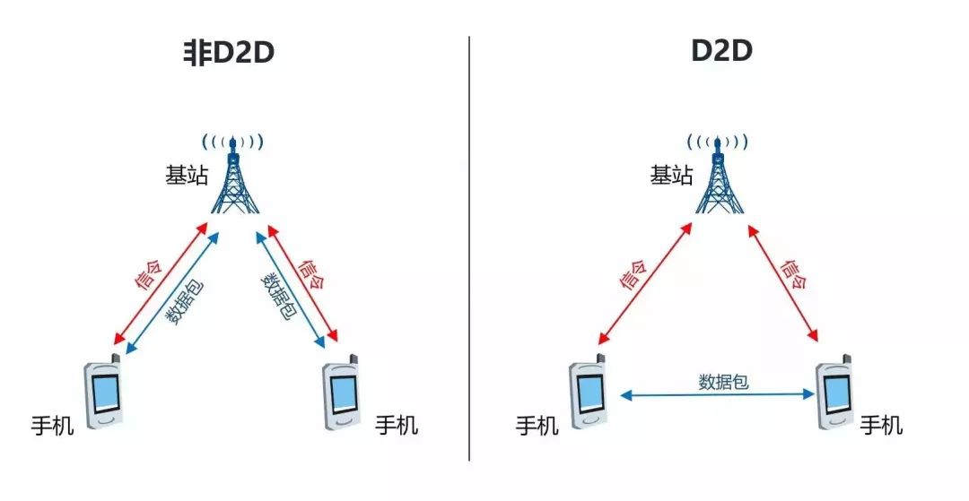 而在5G时代,这种情况就不一定了。5G的第五大特点——D2D,也就是Device to Device(设备到设备)。